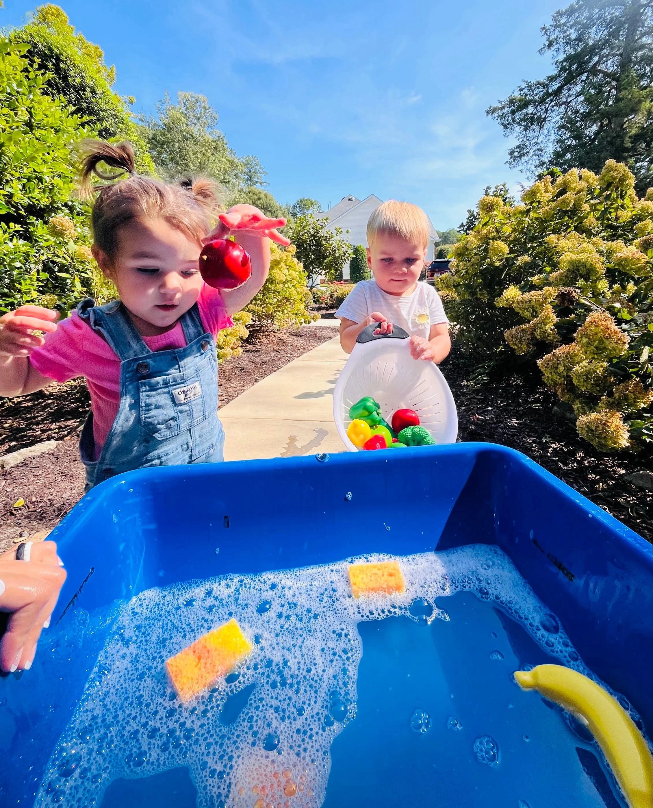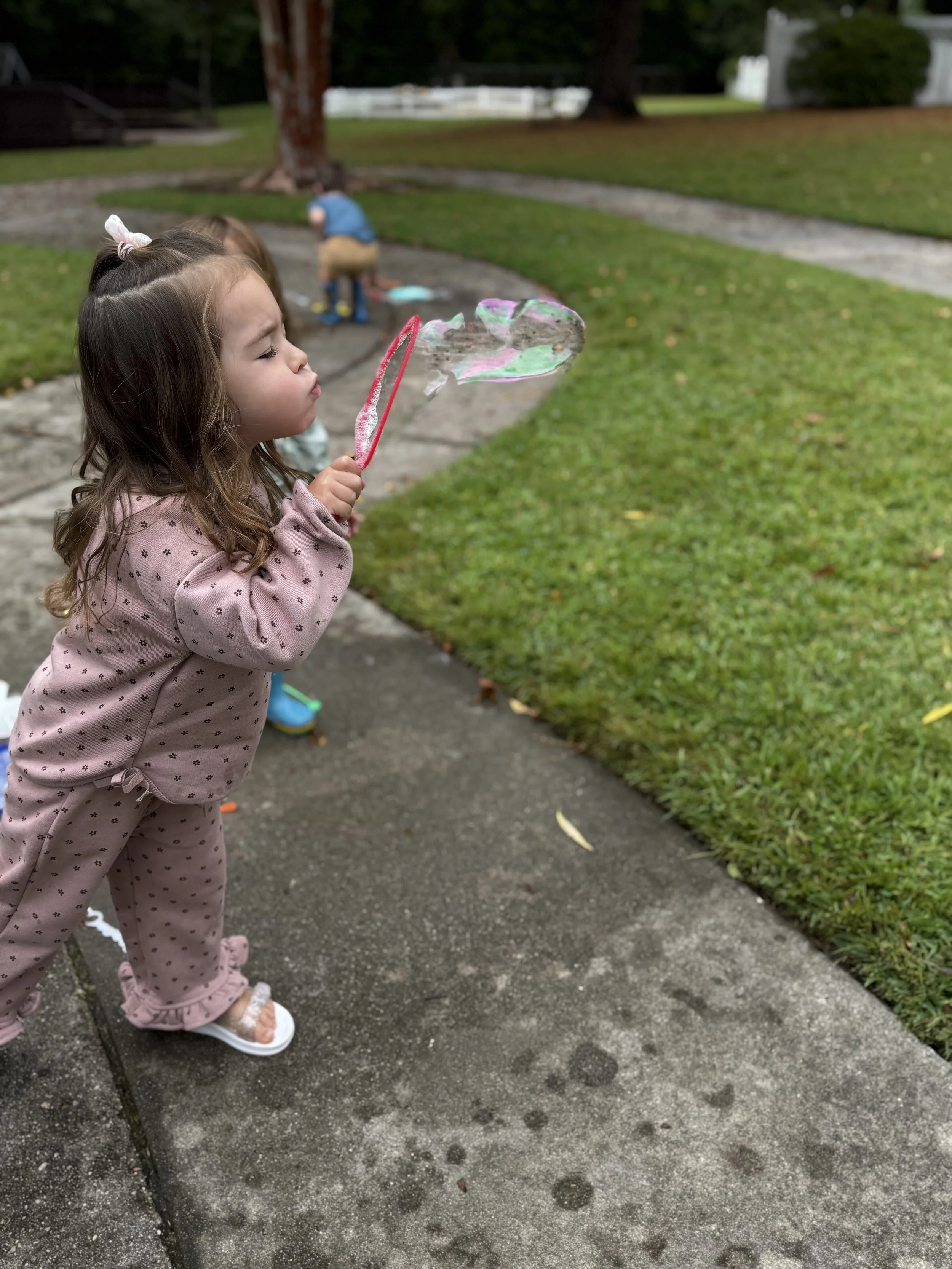Our Little Bluestem 3s Half-Day playing with bubbles