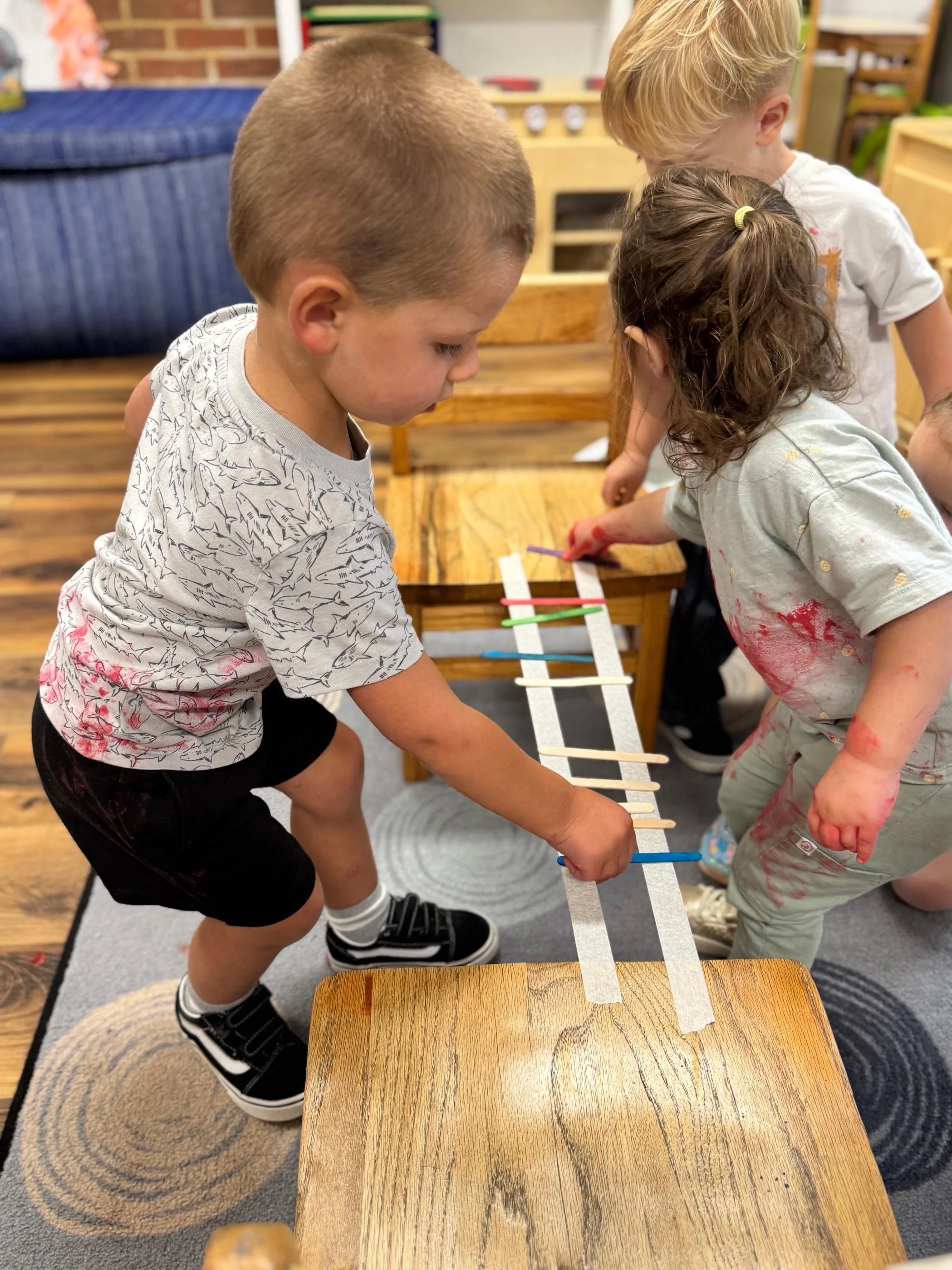 Our Little Bluestem 2s building a bridge with tape and popsicle sticks